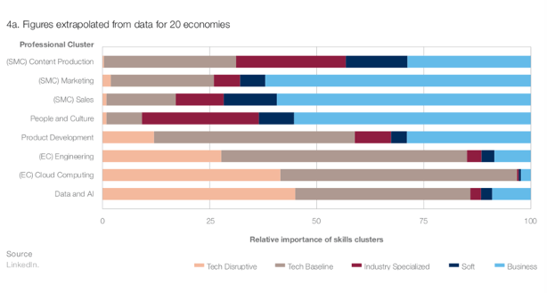 According to the World Economic Forum (2020), 17% of opportunities in emerging professions between 2020 and 2022 will be in marketing, sales and content and will include positions like social media assistant or digital specialist. These jobs will require basic computer literacy as well as specific knowledge depending on the industry, such as online marketing or web design (World Economic Forum, 2020). Many of them will also require an elementary understanding of more advanced technologies such as Artificial Intelligence (Blue, 2020).